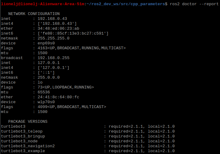 $ ros2 doctor --report