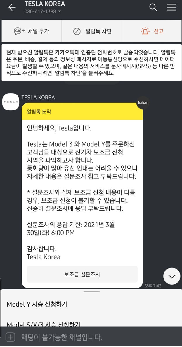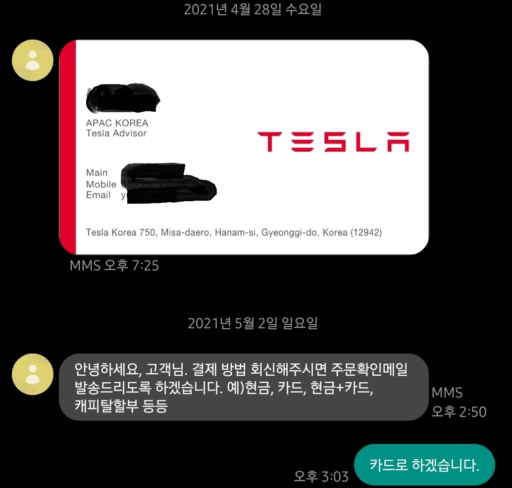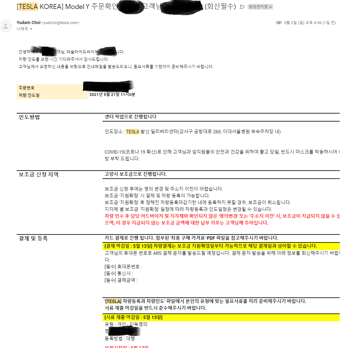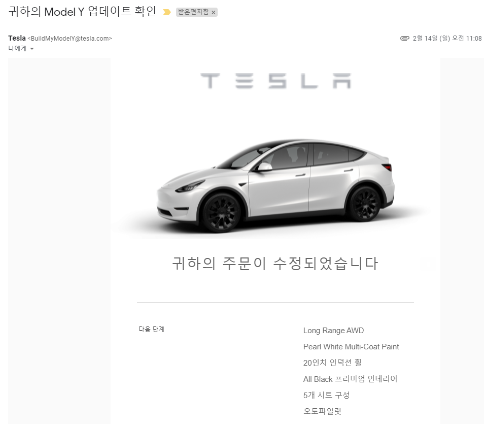 계약금 걸고 아무 연락도 없던 테슬라에서 처음으로 연락이 왔어요.
