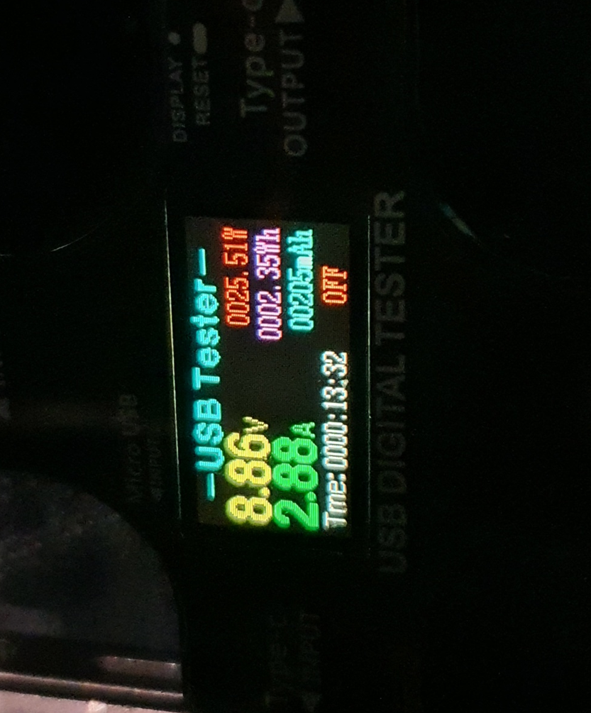 집에 돌아와서 테슬라 USB C 타입 충전포트 전원을 측정해 보았다.