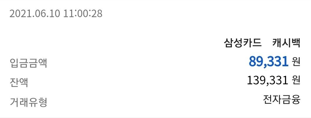 FSD캐시백은 89,331원은 6월10일에 들어온다고 한다.