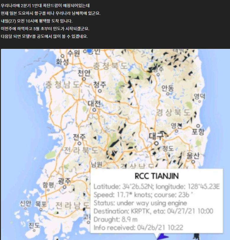평택항에 테슬라 차들 폭탄 드랍.!!