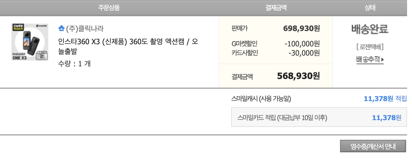 insta360 x3 를 구입했습니다.