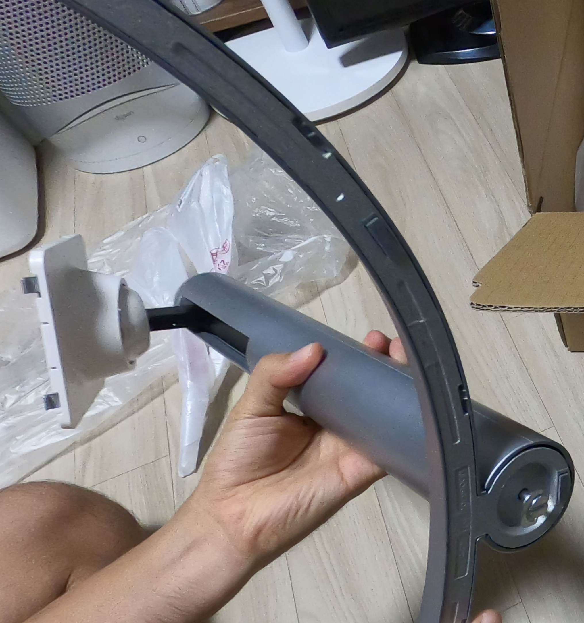 스탠드는 활 모양인데 자리를 많이 차지해서 나중에 모니터 암으로 바꿔야 할것 같다.