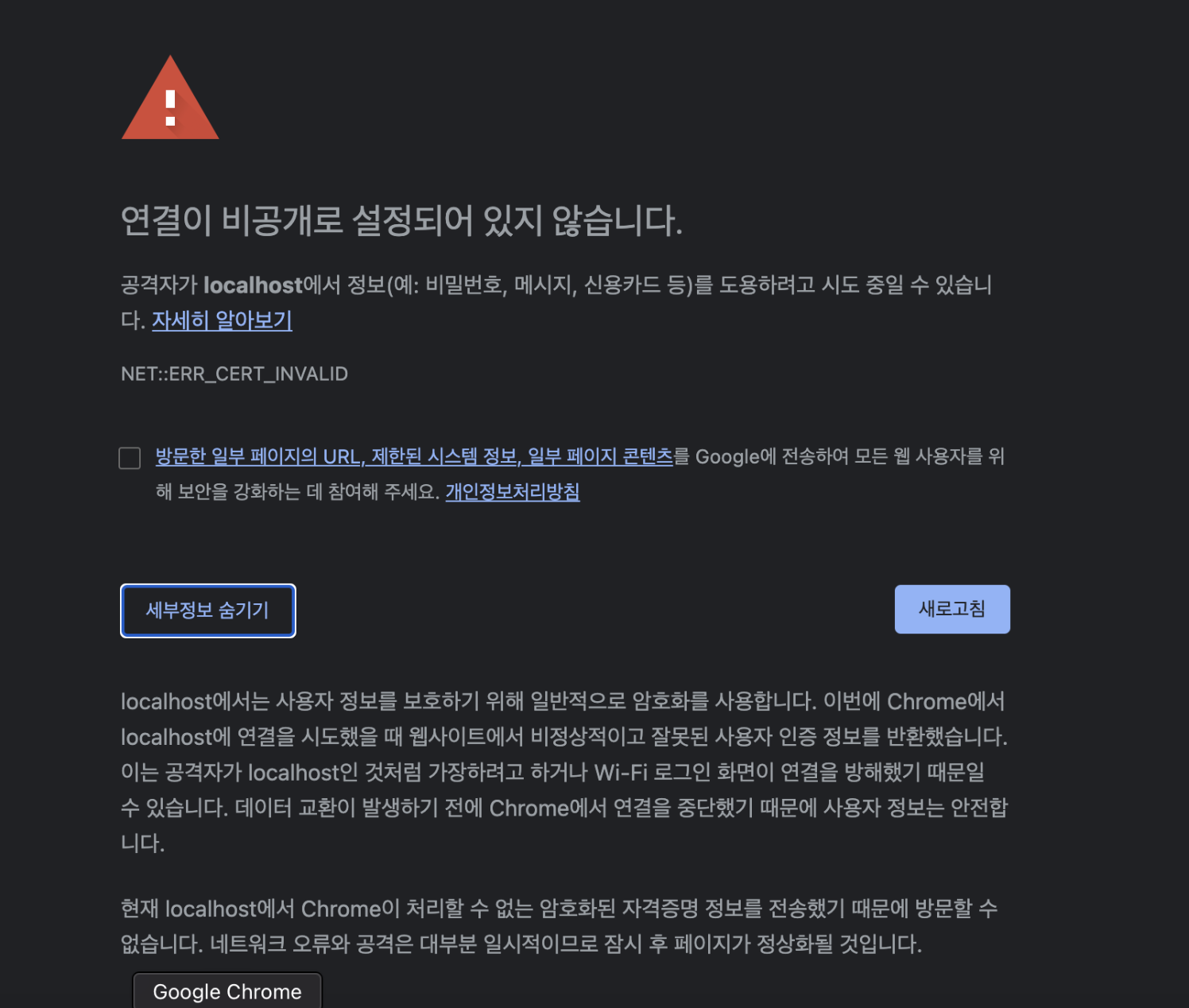 크롬 연결이 비공개로 설정되어 있지 않습니다. mac 해결방법